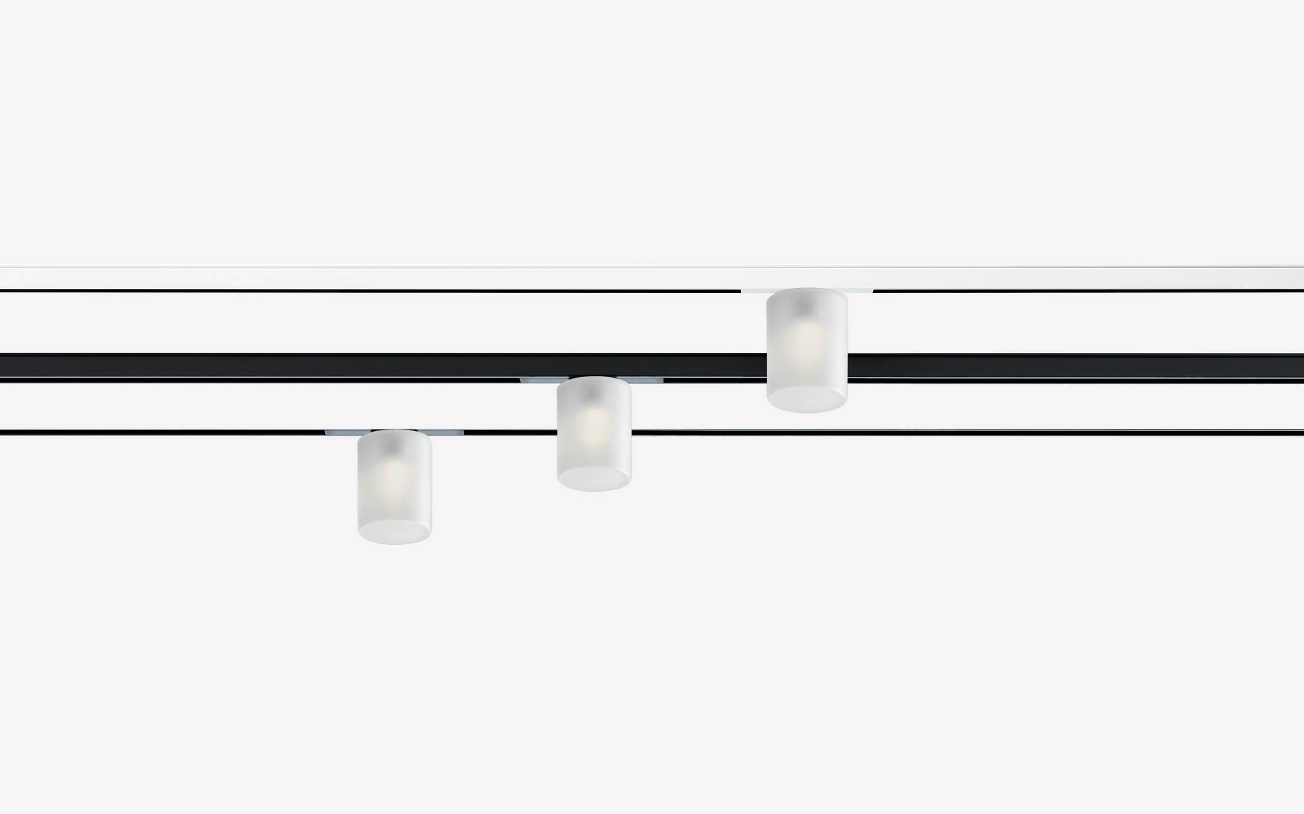 Dekorative LED-Leuchte für das System Track 48. Ausgestattet mit einem zylindrischen Element aus sandgestrahltem Glas. Diffuse Lichtverteilung in alle Richtungen. Die ON/OFF- und die dimmbare Version DALI/PUSH sind um einen Stromschienenadapter zu ergänzen. Lichtstromerhalt von 100.000 Stunden nach Standard L80/B10.