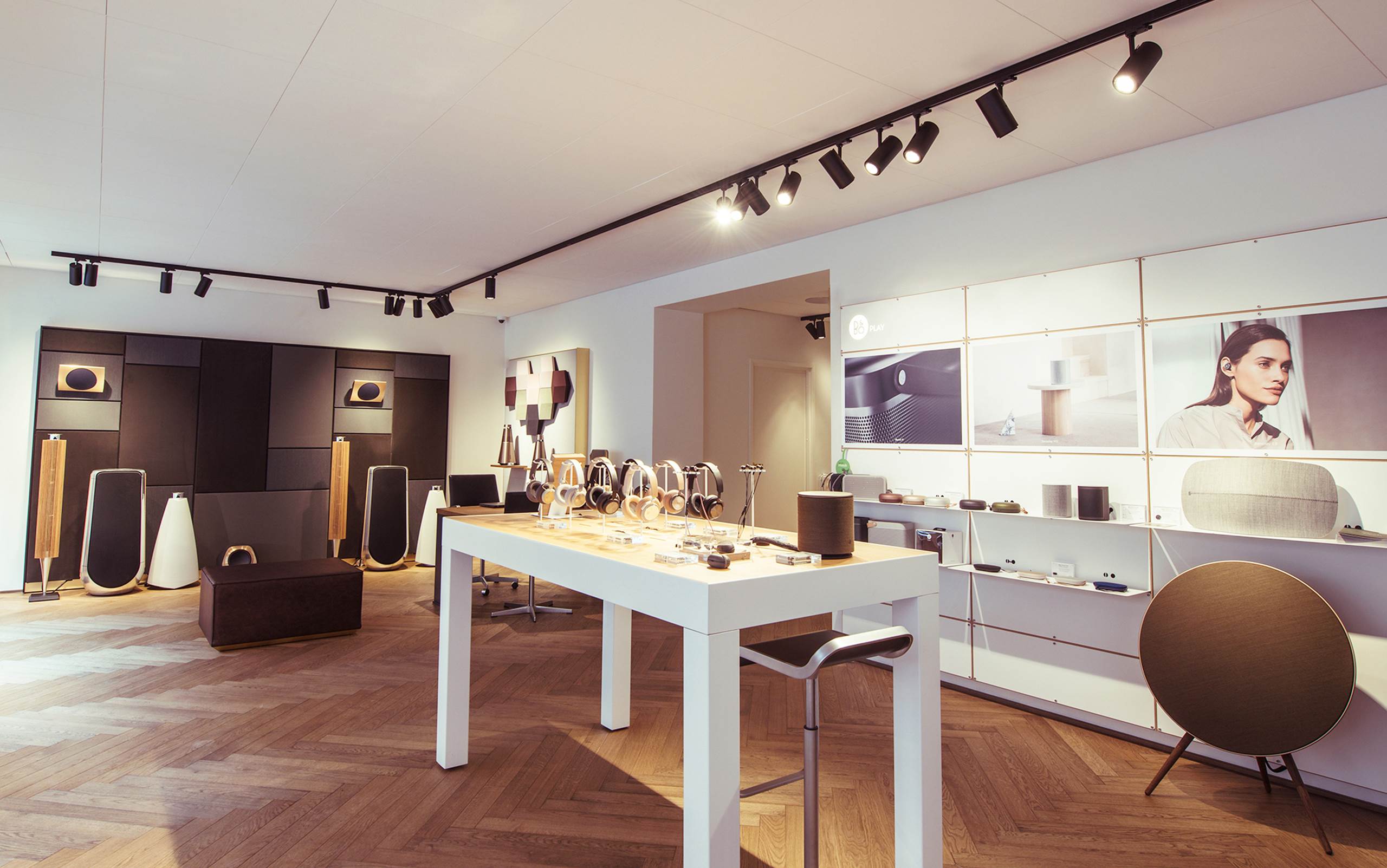 Der Showroom von Bang & Olufsen zieht nicht nur Kunden an, er ist auch ein Modell dafür, wie wichtig die richtige Beleuchtung für den Einzelhandel ist.