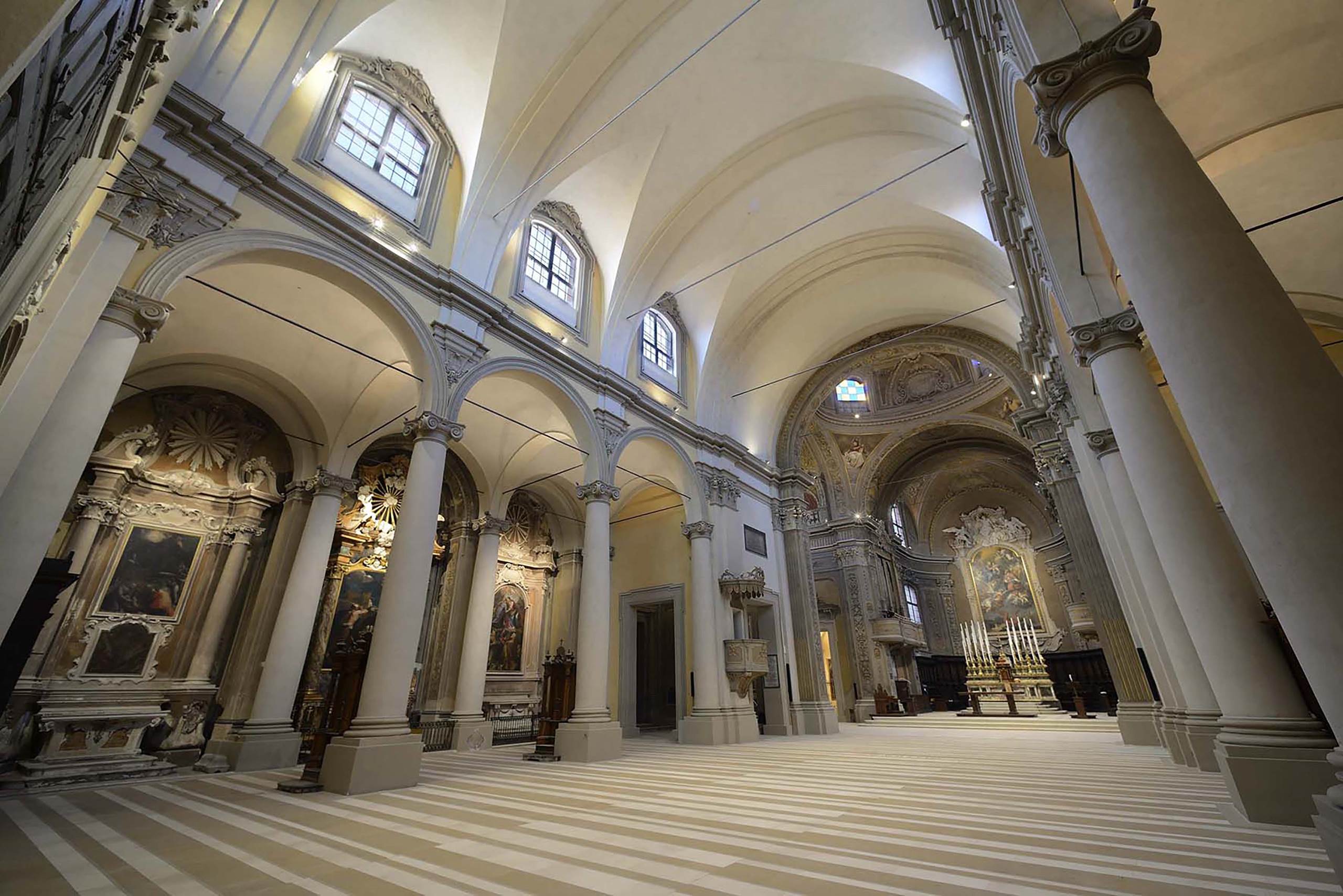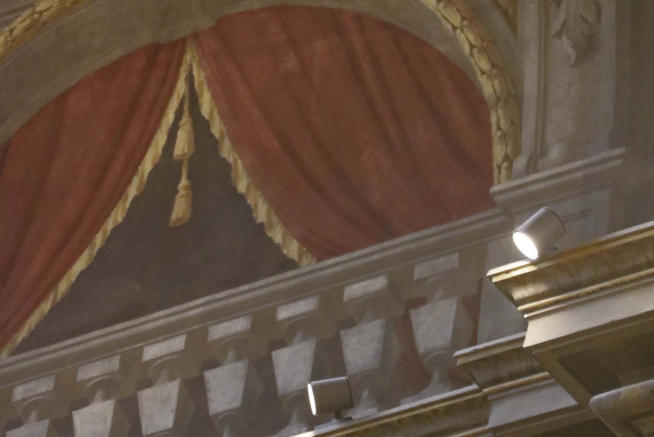 Der schwerwiegende Schaden, der durch das Erdbeben in Emilia 2012 verursacht wird, hat eine Reihe neuer Initiativen angeregt, die nicht nur zur Verbesserung der seismischen Reaktion der Struktur, sondern auch zur Überprüfung des veralteten Beleuchtungsdesigns verbessert werden. Während der Neuverdrahtung des elektrischen Systems wurden alle Leuchten ersetzt, um die Nutzung des Raums widerzuspiegeln und die darin enthaltenen Kunstwerke zu beleuchten.