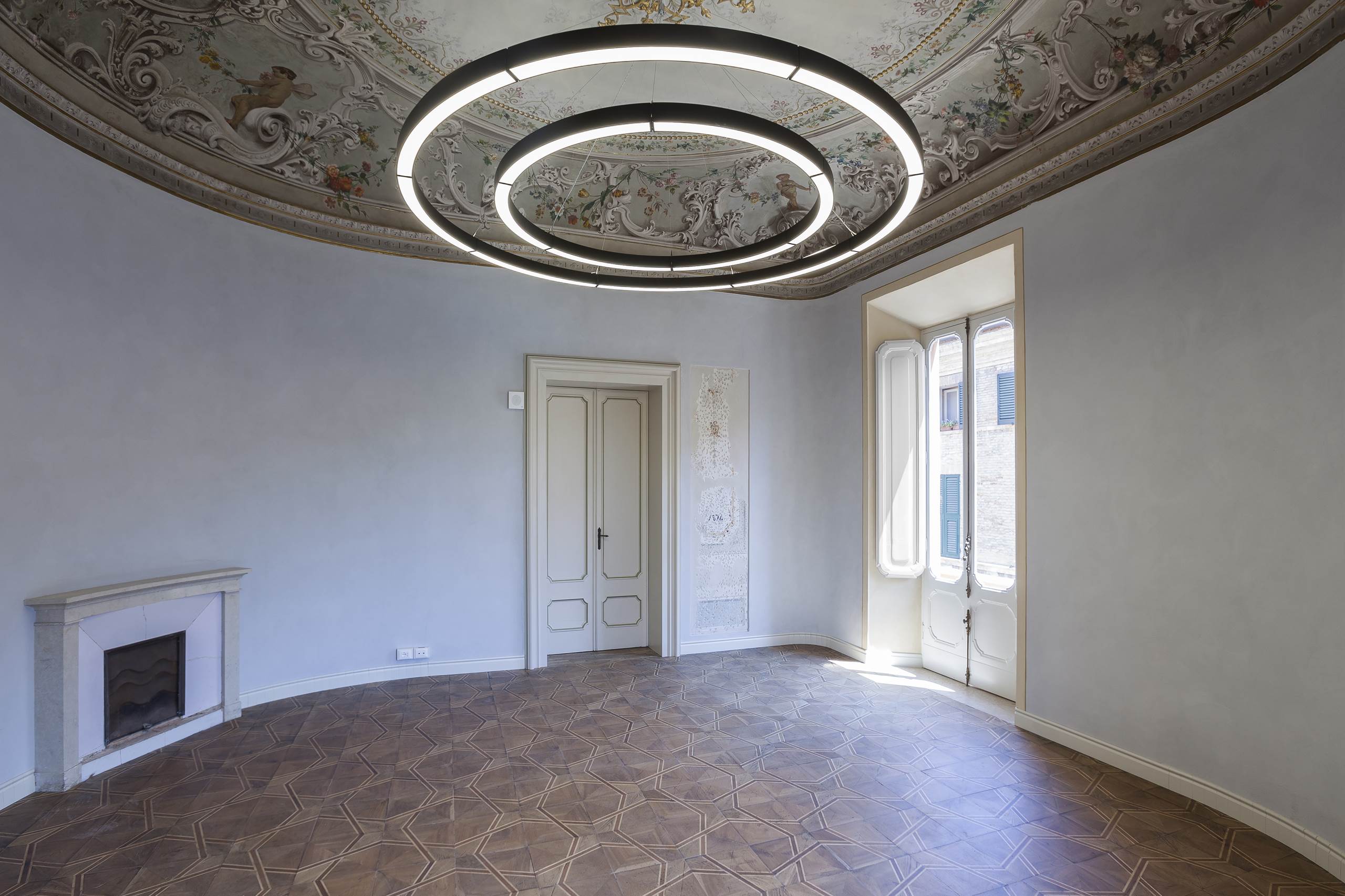 Über die Restaurierung erforderte die Neukonfiguration des Palazzo in eine Schule eine moderne Beleuchtung, daher die Entscheidung, das Lichtdesign auf die Verwendung einer Reihe spezieller Suspensionsleuchten mit der neuesten Generation von LED -Technologie zu konzentrieren.