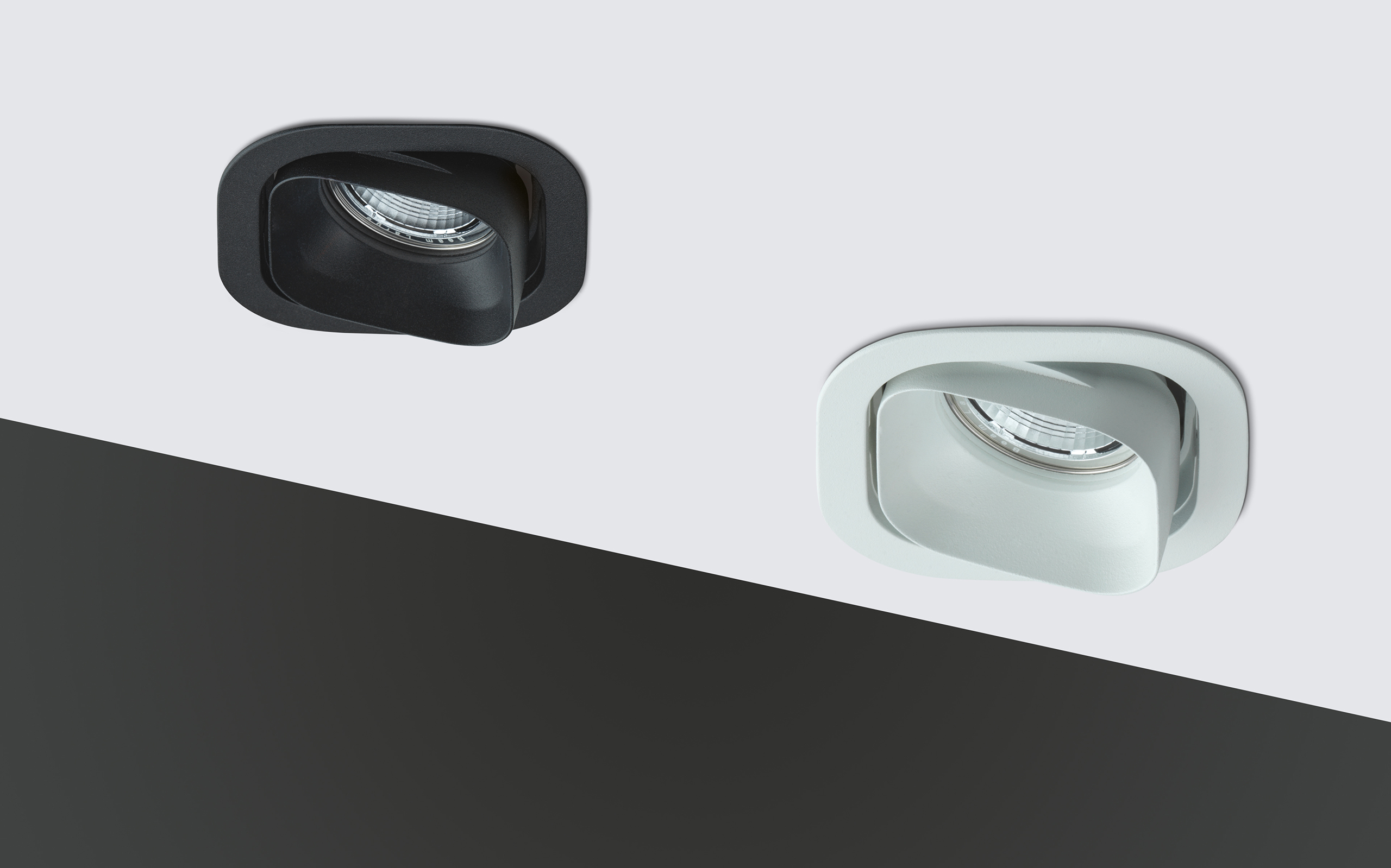 LED downlight with +/-25° tilt made from diecast aluminium and available in 2700K, 3000K and 4000K in CRI95 and 3000K in CRI85. Nominal power consumption of 13W (1900lm). Lumen maintenance of 100,000 hrs at L80B10. The downlight is complete with an optics assembly including mirror-painted polycarbonate reflective optic in different beam angles. An optional coloured cover made from PMMA can be added to the optics assembly in translucent, translucent orange, translucent blue and translucent green or matt black. The coloured cover catches the light and gives the downlight a glowing, coloured cover effect. Ingress protection of IP20 or IP40 in the fixed version, when used with satin diffuser, which is available as an accessory. Class III luminaire to be used with remote driver, available for ON/OFF, DALI, 1-10V, PUSH and PHASE CUT dimming. Also available in emergency version (consult factory). A Bluetooth accessory can be used in combination with the DALI driver for control via a smartphone app. To be ordered separately. Housing finishes include matt white textured and matt black textured (powder coated).