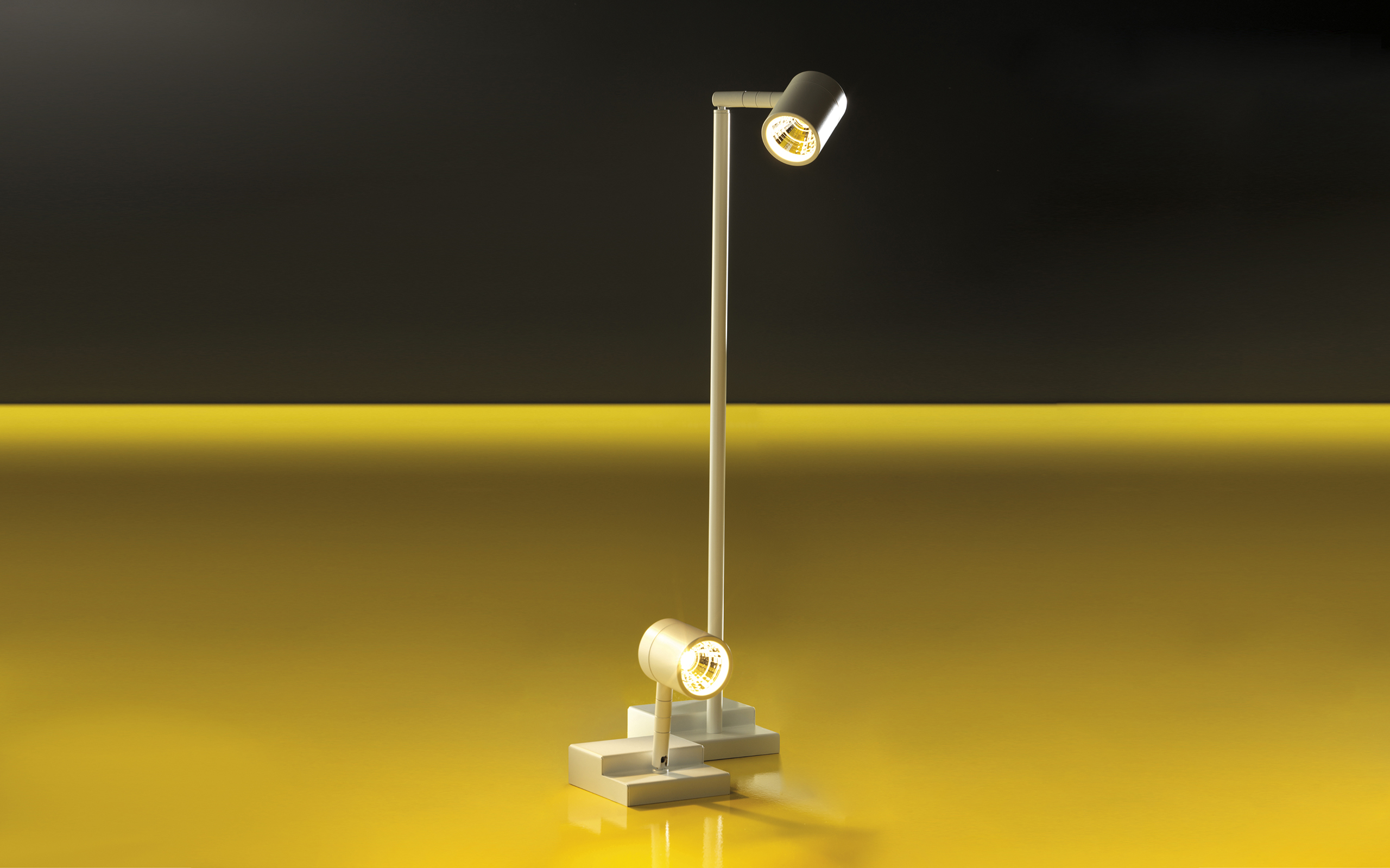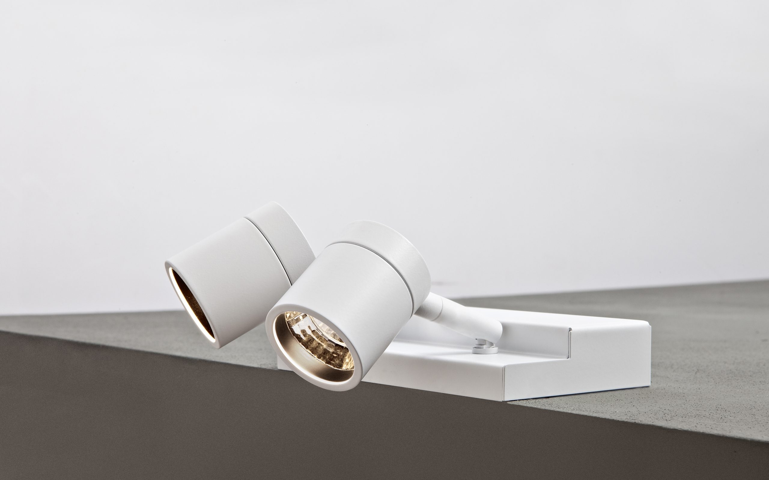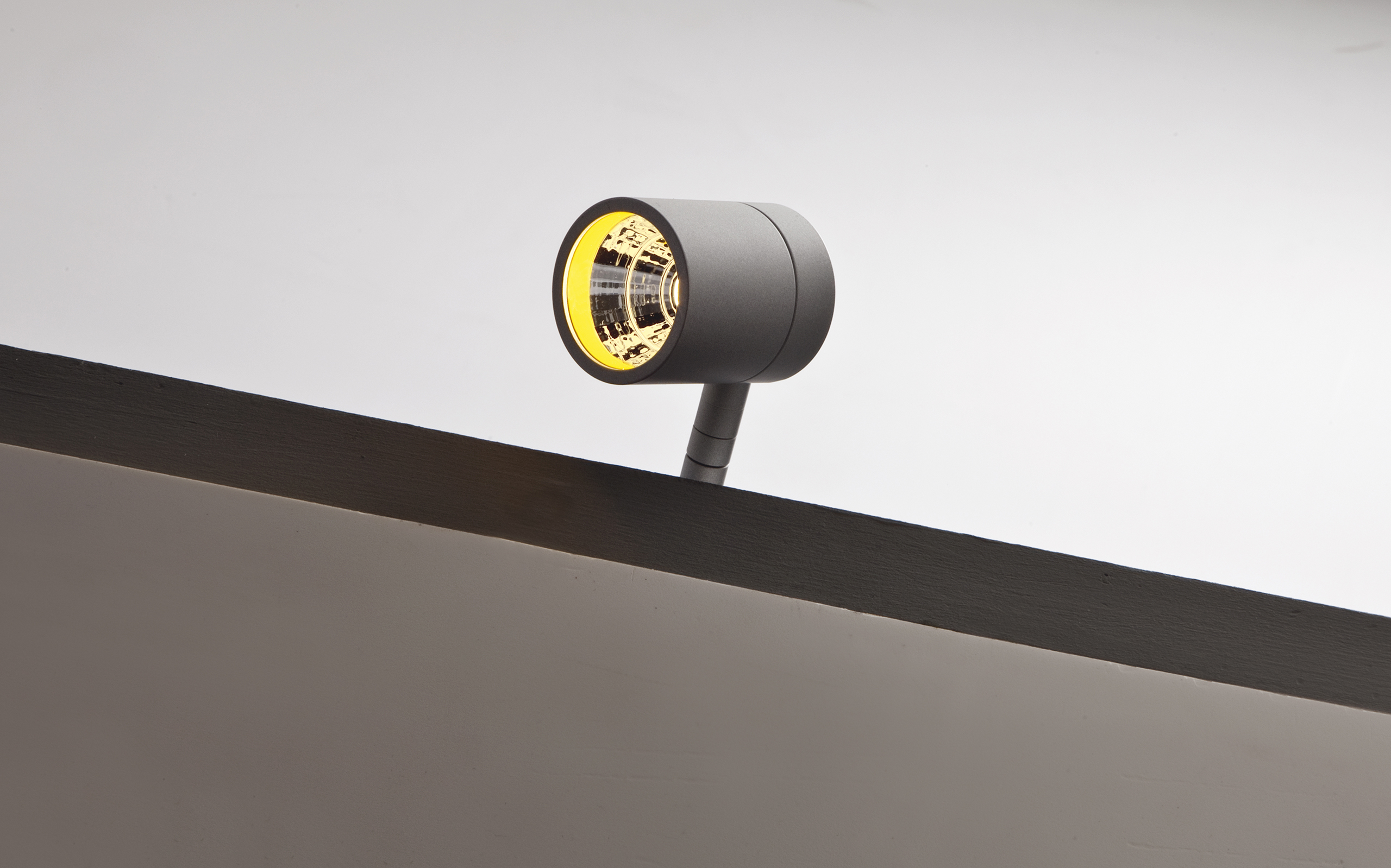 Mini LED Projector with a single, adjustable spot. Manufactured from diecast aluminium and sheet metal base. Finishes include matt white, matt black and concrete grey. 355° horizontal and +/-100° vertical adjustment. Each fixture needs to be completed with a mirror-painted polycarbonate reflective optic including decorative ring. Available beam angles include Medium, Large and Wide. The decorative ring is available in nine finish options. Accessories include narrow optics attachment, honeycomb louvre and satin diffuser. Ingress protection of IP20.