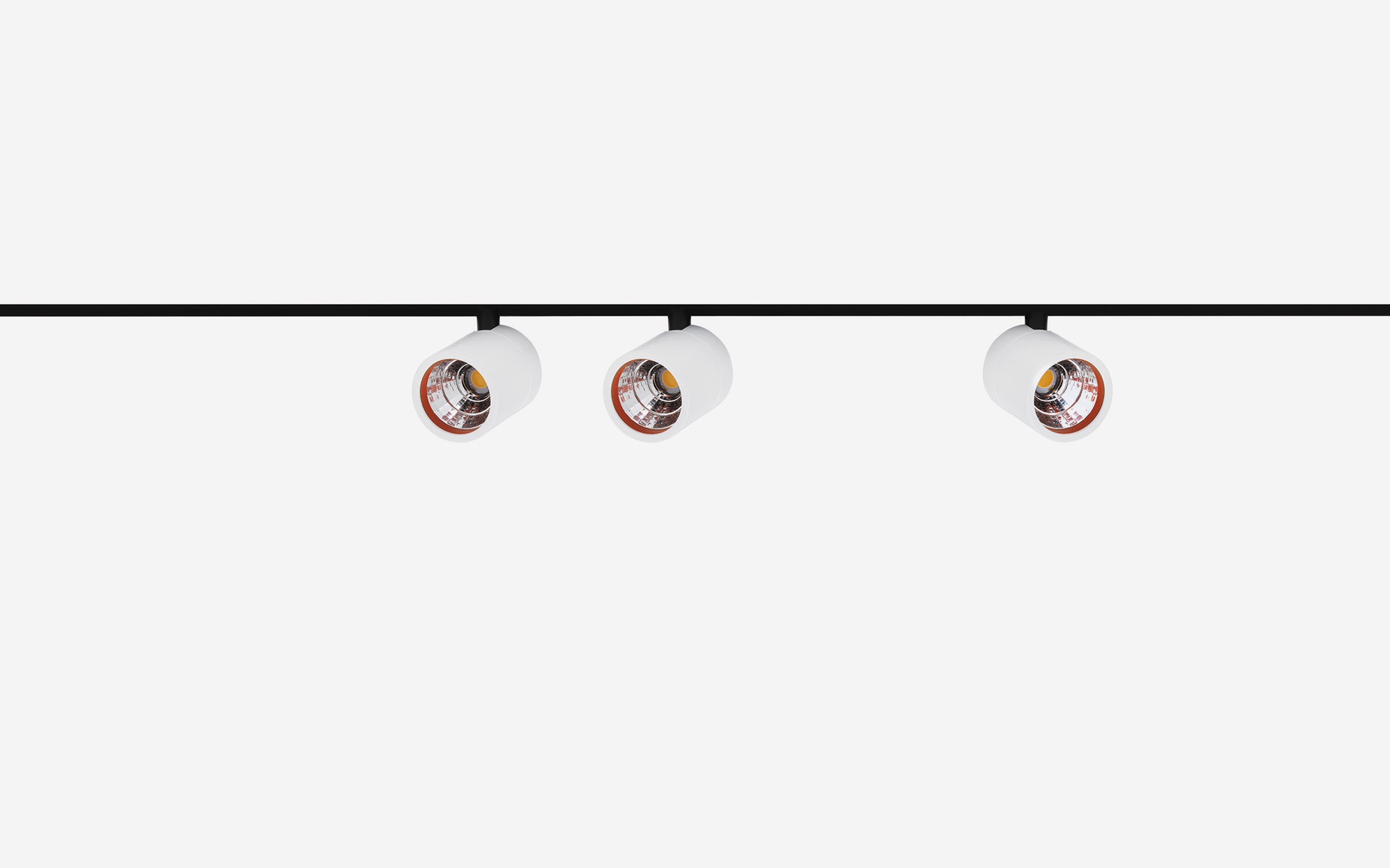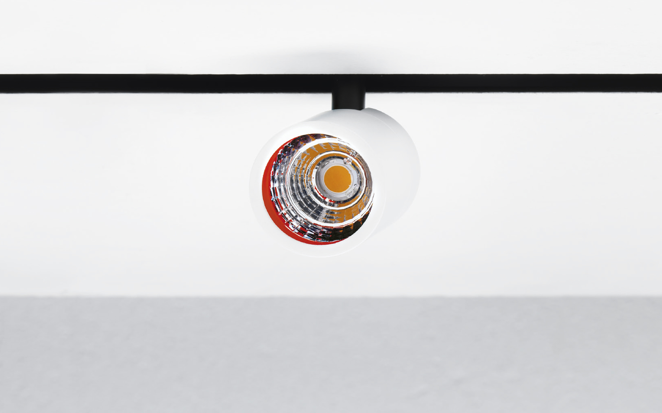 Projector with 1 or 2 LED spots adjustable by 350° in the horizontal plane and 90° in the vertical plane, for Track48 or Track 48-RT recessed system. Matt white, matt black or cement grey painted aluminium body. Each spot must be completed with decorative ring complete with optics. Available in ON-OFF, DALI/PUSH or CASAMBI versions. Luminous flux maintenance of 100,000 hours according to curve L80B10.