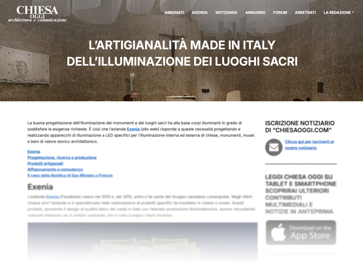 Home / News / Exenia su Chiesa Oggi – L’artigianalità Made in Italy nell’illuminazione sacra.