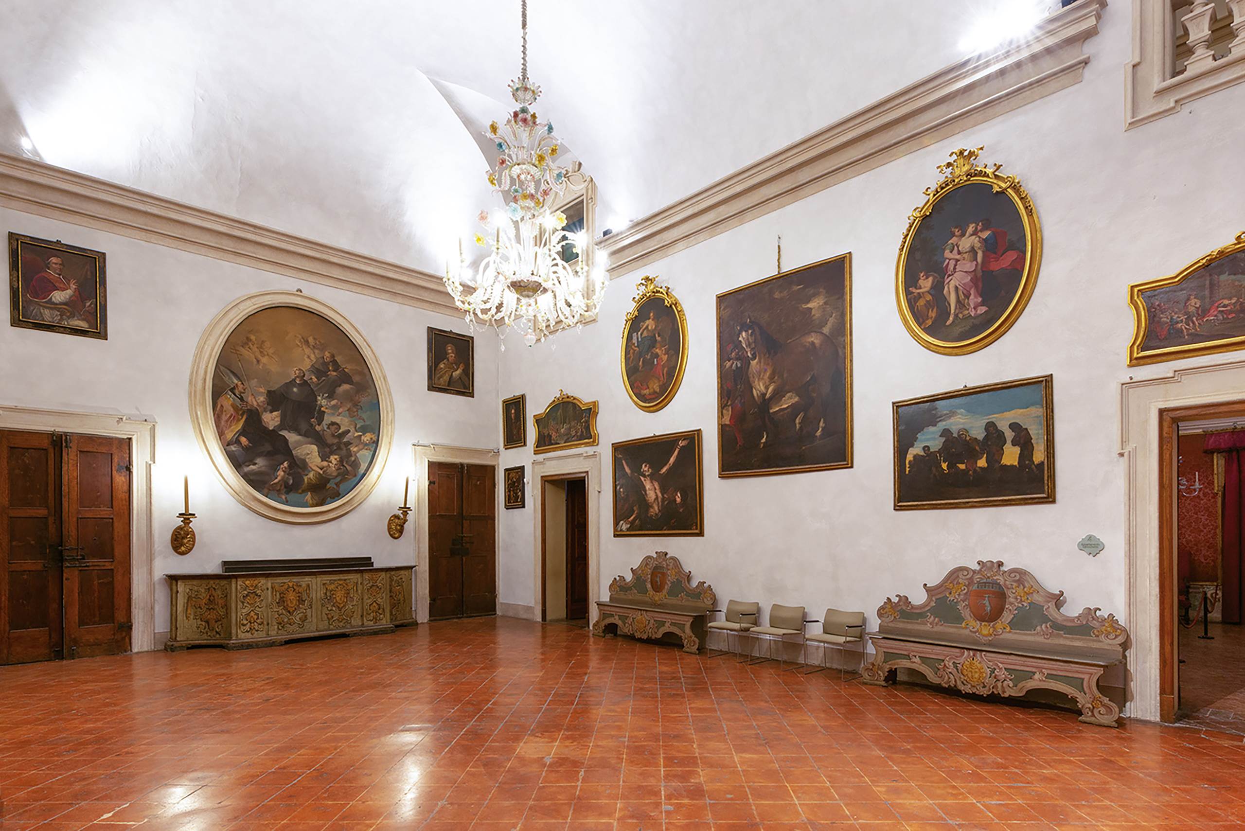 Pinturas, muebles, libros y muebles nos presentan el modus vivendi de una noble familia Tezzoni. Un diseño de iluminación reflexivo ha revivido la importancia del palacio al involucrar a los visitantes y transportarlos en el tiempo.
