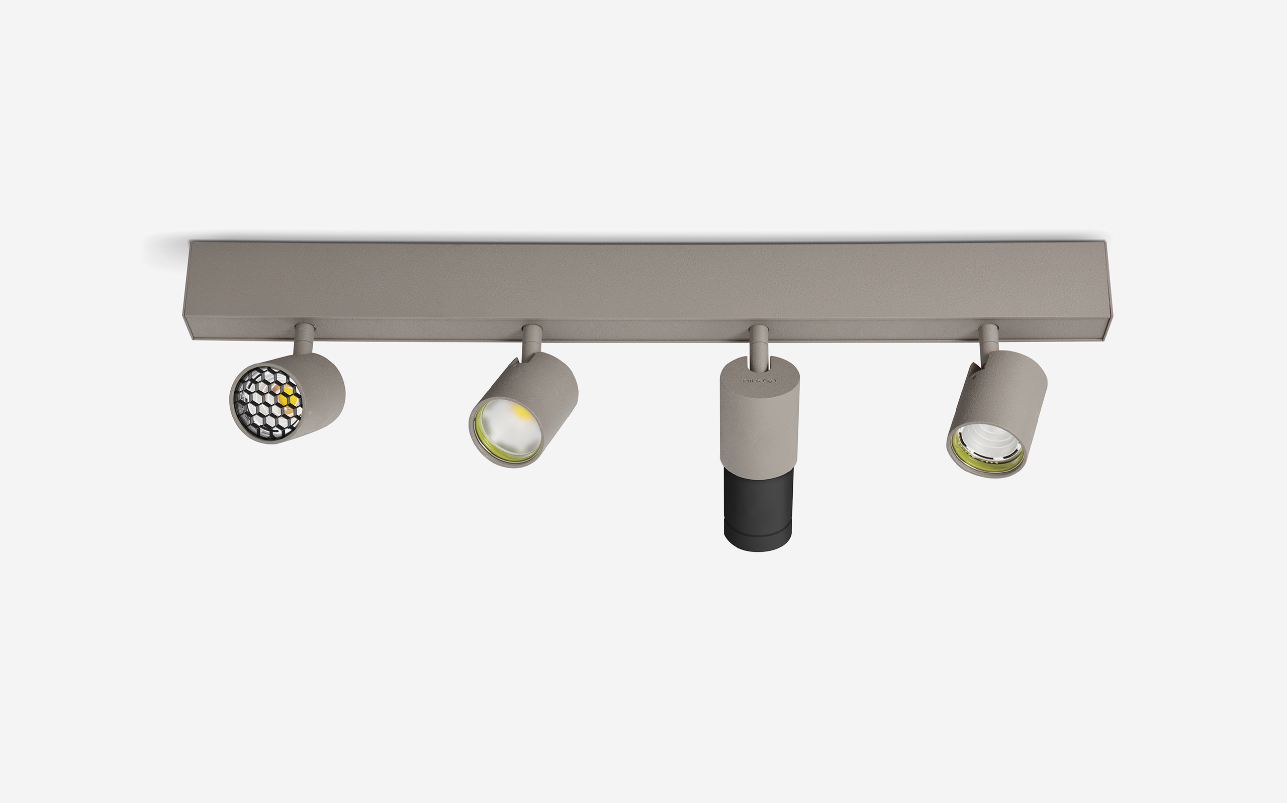 Le Pluriel Plus Bar est un luminaire d’applique/plafonnier avec sources lumineuses à DEL « chip on board » (COB) alimentées en courant constant par ballasts électroniques incorporés dans le luminaire. Les sources sont installées sur quatre groupes optiques orientables indé pendants grâce à une articulation brevetée. Les réglages sur le plan horizontal sont gérables sur 360° tandis que sur le plan vertical, ils sont limités à +90°/90°. Le corps optique est en alliage d’aluminium moulé 6060 avec fonction dissipatrice. Support en métal re vêtu de peinture liquide. La fixation murale avec chevilles est en nylon et le câblage du réseau est sur le bornier. Les optiques sont réfléchissantes et en polycarbonate