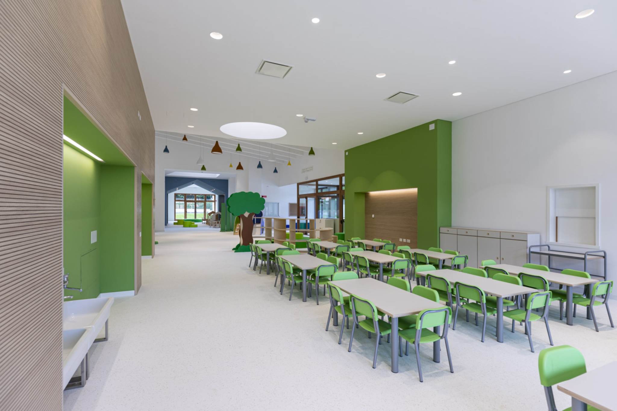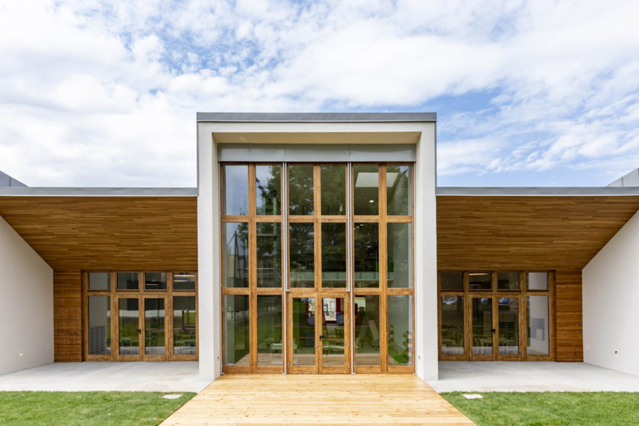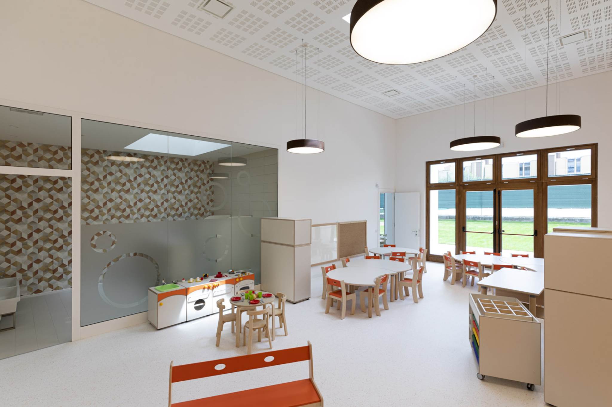 Le projet du nouveau jardin d’enfants à Cuneo a été développé dans le but de répondre à un phénomène d’une forte augmentation démographique du quartier et à de nouveaux besoins didactiques, que la structure scolaire préexistante n’était plus en mesure de satisfaire . & nbsp; Le volume de l’école est sculpté par une série d’alcôves, lambrissée de bois de mélèze, un matériau chaud et confortable, qui crée un lieu protégé et un abri pour les enfants. & nbsp; L’accès à l’école a lieu à travers le plus profond d’entre eux, qui agit comme un filtre entre l’intérieur et l’extérieur et accueille les enfants, les guidant à l’intérieur de l’espace scolaire. & NBSP; Pendant les mois d’hiver, les grandes fenêtres deviennent des systèmes solaires passifs, qui permettent d’accumuler de l’énergie solaire et de la transférer à l’intérieur du bâtiment . Dans les mois les plus chauds, en revanche, les nuances de soleil horizontales en aluminium, réglables avec un contrôle motorisé, réduisent l’exposition solaire et évitent la surchauffe des intérieurs.