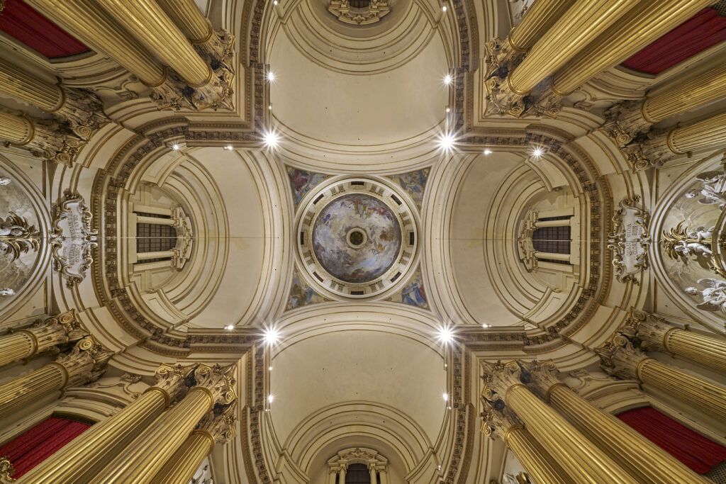 La collaborazione con Exenia ha permesso di tradurre queste esigenze in soluzioni invisibili ma efficaci, con apparecchi piccoli, fasci precisi e temperature modulabili. “La doratura barocca aveva bisogno di una luce solenne”, racconta, e ogni dettaglio, dai 180 apparecchi puntati uno a uno alle staffature speciali, è stato studiato per far emergere la bellezza del luogo senza spettacolarizzarla.