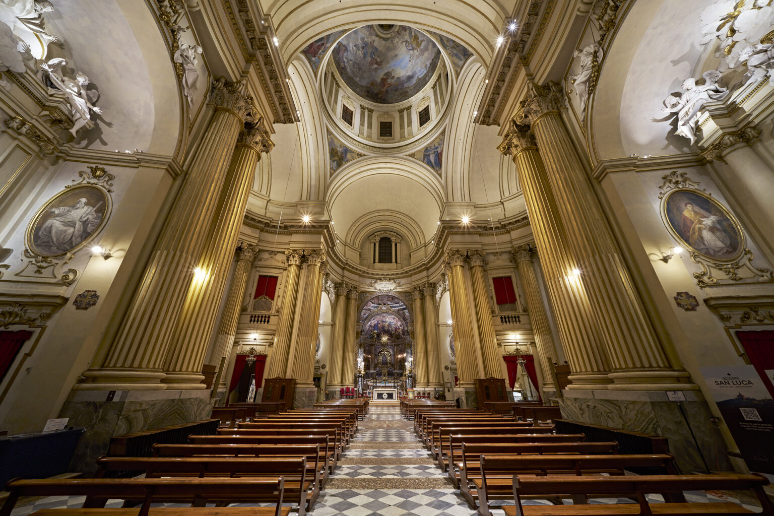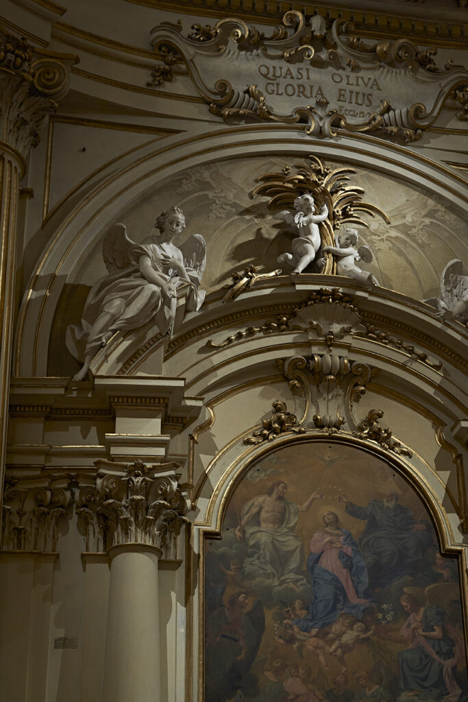 All’interno si rivela un patrimonio ricchissimo, pitture seicentesche, pale d’altare, stucchi, marmi e dorature che chiedono attenzione e misura, la prima trasformazione, prima ancora che luminosa, è stata imparare a leggere ciò che il luogo custodisce. “È stato un percorso di scoperta bellissimo”, aggiunge, e si percepisce subito che la trasformazione principale è stata percettiva, non solo luminosa.