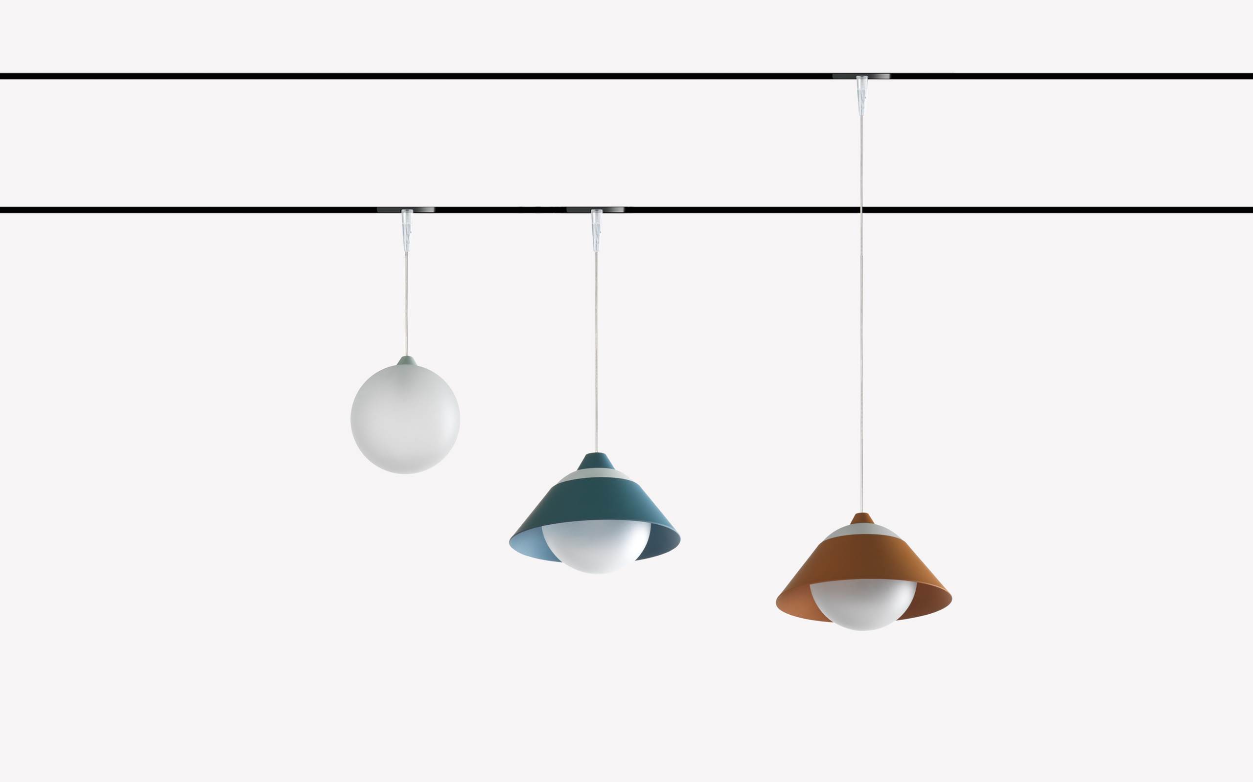 Sospensione con sorgente luminosa a LED, disponibile a 2700K, 3000K o 4000K con CRI95 oppure a 3000K con CRI85. Potenza e flusso nominali di 6W e 870lm. Mantenimento del flusso luminoso di 100.000 ore secondo la curva L80B10. Dotata dell’elemento sfera Giotto realizzato in vetro e disponibile a diametro 150mm, per una distribuzione luminosa omnidirezionale. Grado di protezione IP40. Classe III di isolamento. Funzionamento ON-OFF con driver interno al rosone, da ordinare a parte e disponibile in sei possibili finiture: rosso mattone, bianco opaco, nero opaco, azzurro carta zucchero, grigio cemento ed effetto corten e può essere scelto tra più versioni per poter montare una singola sospensione, per montarne tre oppure cinque. È pure disponibile un accessorio per l’installazione su controsoffitto, fornito nella finitura riverniciabile bianco intonaco. La sospensione può inoltre facoltativamente essere completata con un articolo decorativo ordinabile a parte e disponibile nei colori rosso mattone, bianco opaco, nero opaco, azzurro carta zucchero, grigio cemento ed effetto corten.