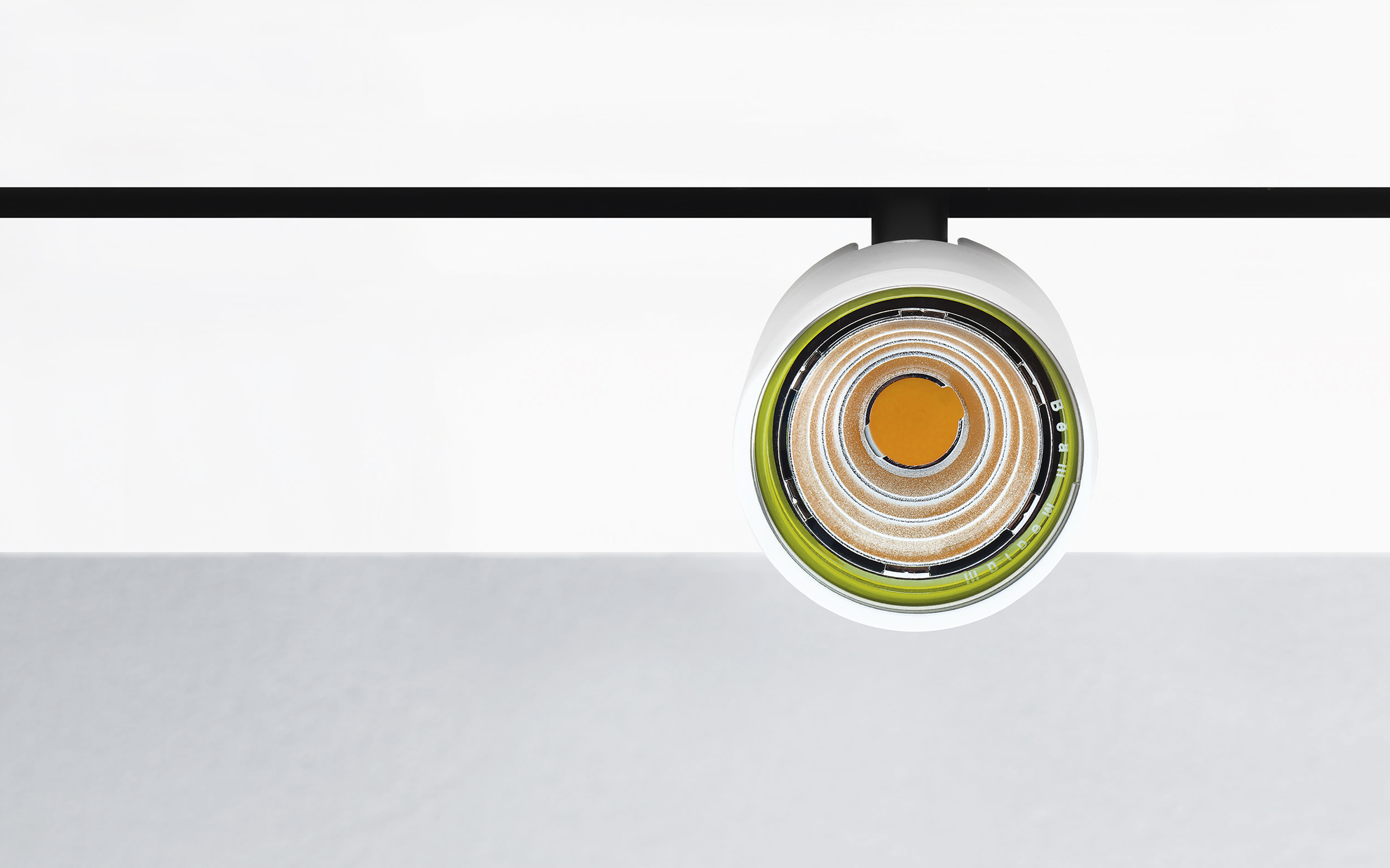Proiettore con 1 o 2 spot LED orientabili di 350° sul piano orizzontale e 90° sul piano verticale, per sistema Track48 o Track 48-RT incassato arretrato. Corpo in alluminio verniciato bianco opaco, nero opaco o grigio cemento. Ogni spot deve essere completato con anello decorativo completo di ottica. Disponibile nella versione ON-OFF, DALI/PUSH o CASAMBI. Mantenimento del flusso luminoso di 100.000 ore secondo la curva L80B10.