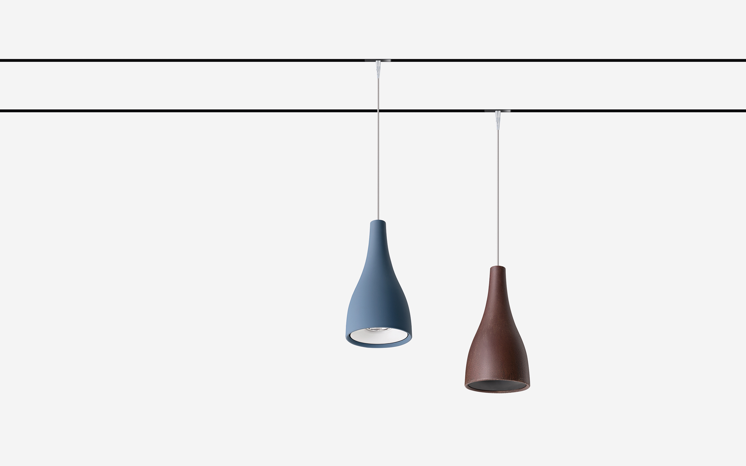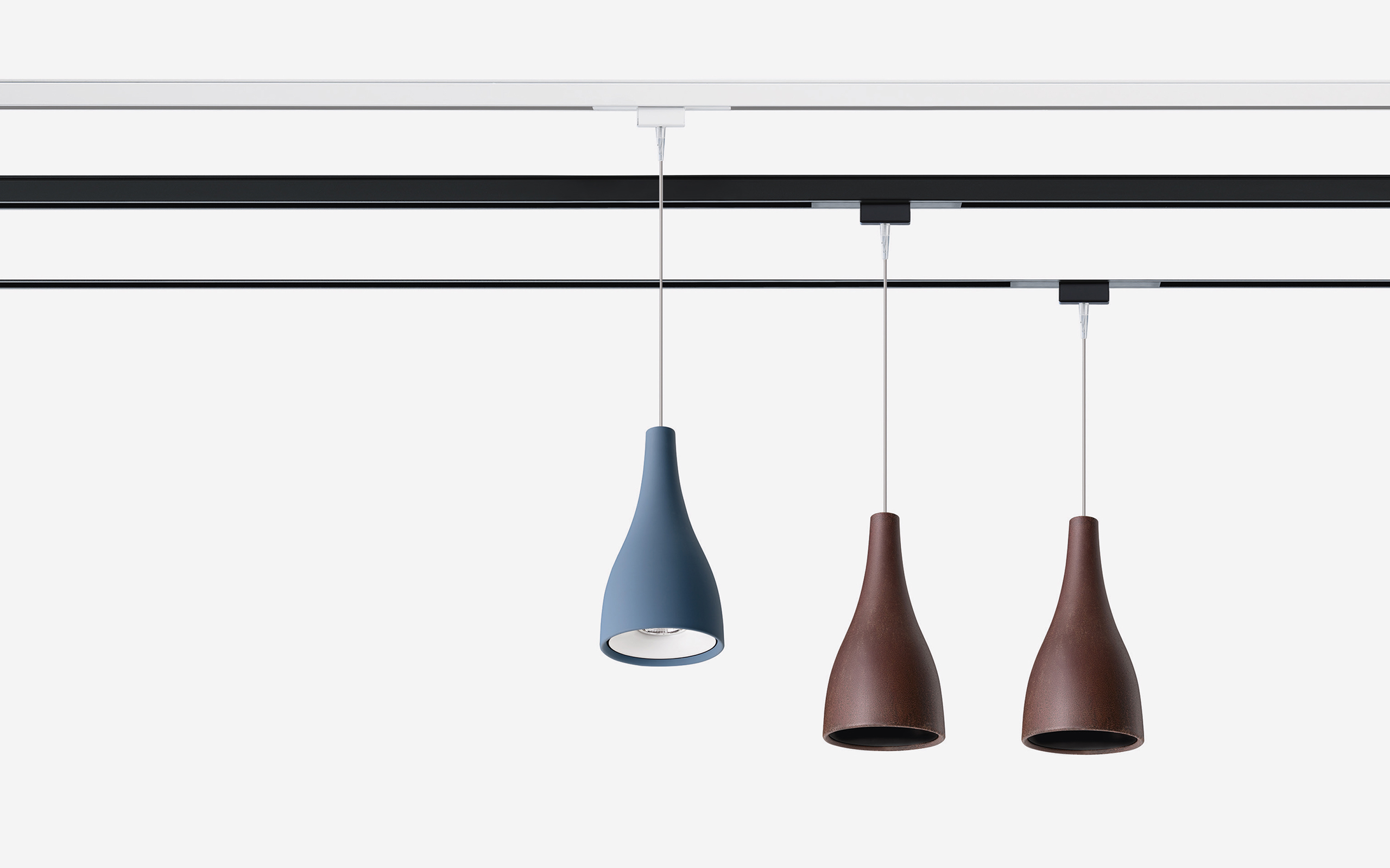 Sospensione decorativa a LED per il sistema Track 48 Evo, Track 48 e Track 48-RT. Corpo in alluminio tirato verniciato esternamente rosso mattone, rosso lacca, verde primavera, giallo grano, bianco lucido, nero opaco, carta zucchero, grigio cemento o in finitura corten. Ogni apparecchio deve essere completato con anello colorato comprensivo di ottica (apertura 75°) e adattatore ON-OFF o DALI/ PUSH. Mantenimento del flusso luminoso di 100.000 ore secondo la curva L80B10.