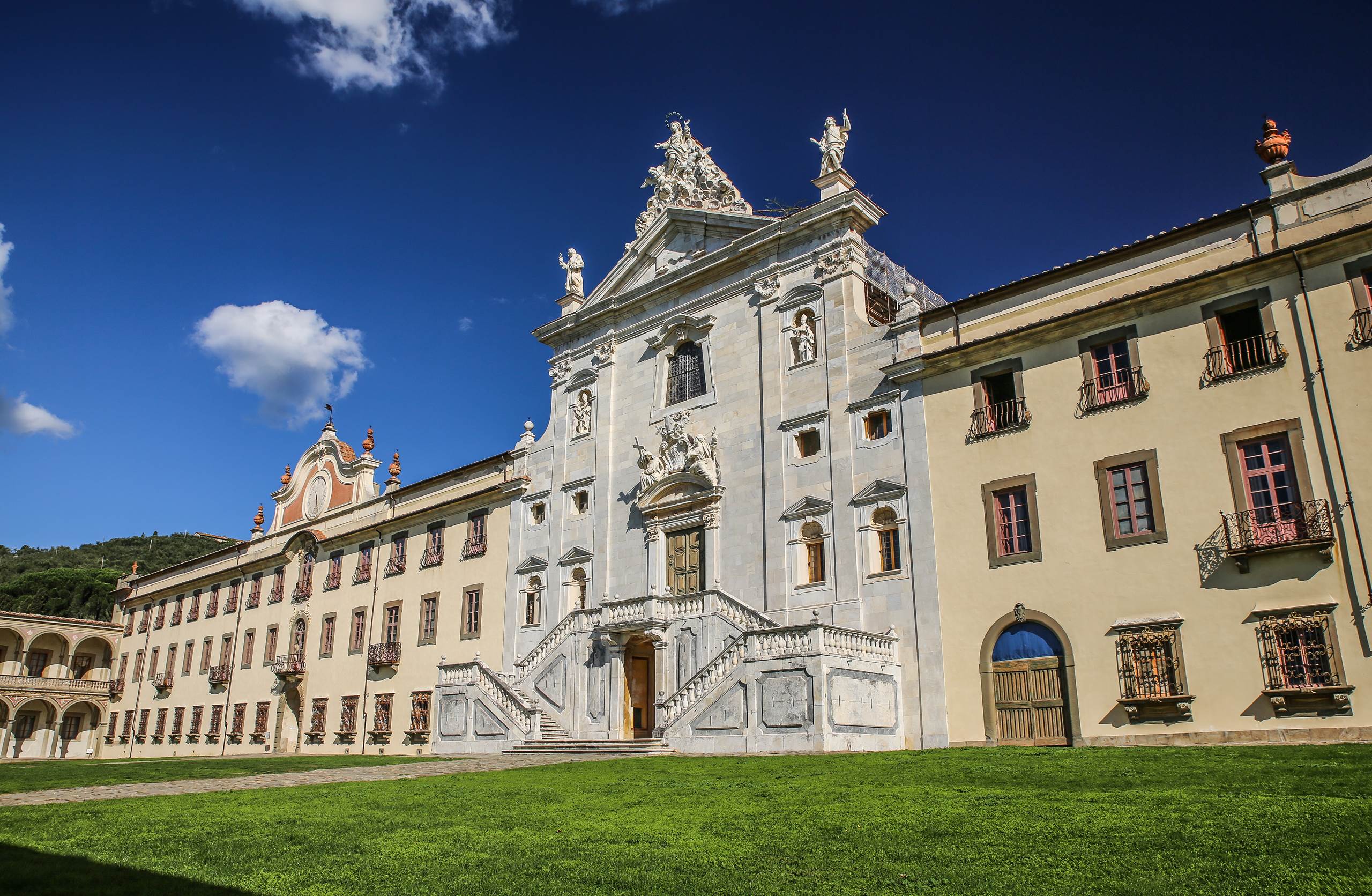 Sorprende, arrivando in Val Graziosa, imbattersi nelle opulente forme barocche della Certosa di Calci. Proprio nell’evidente contrasto con le atmosfere tipicamente rurali del luogo sta però parte del suo fascino, quello di un ex monastero – oggi sede del Museo di Storia Naturale dell’Università di Pisa – elevato a caso-scuola da un intelligente progetto di illuminazione architettonica.