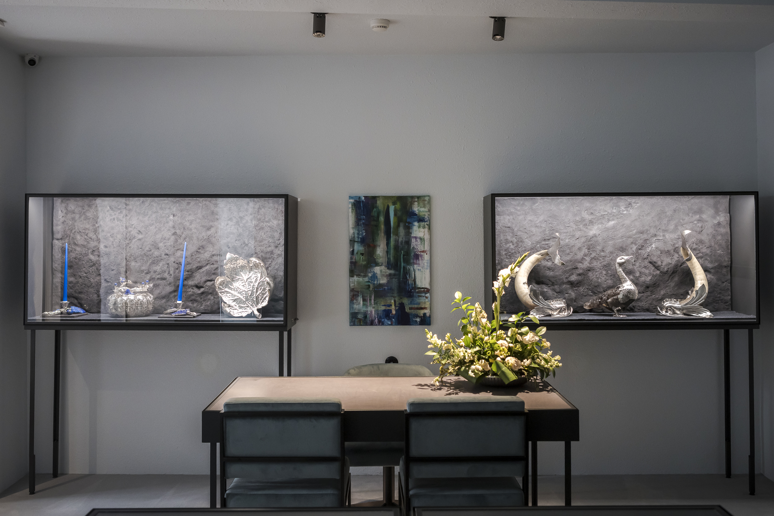 – Finitura in grigio cemento perfettamente integrata nell’estetica dello store.