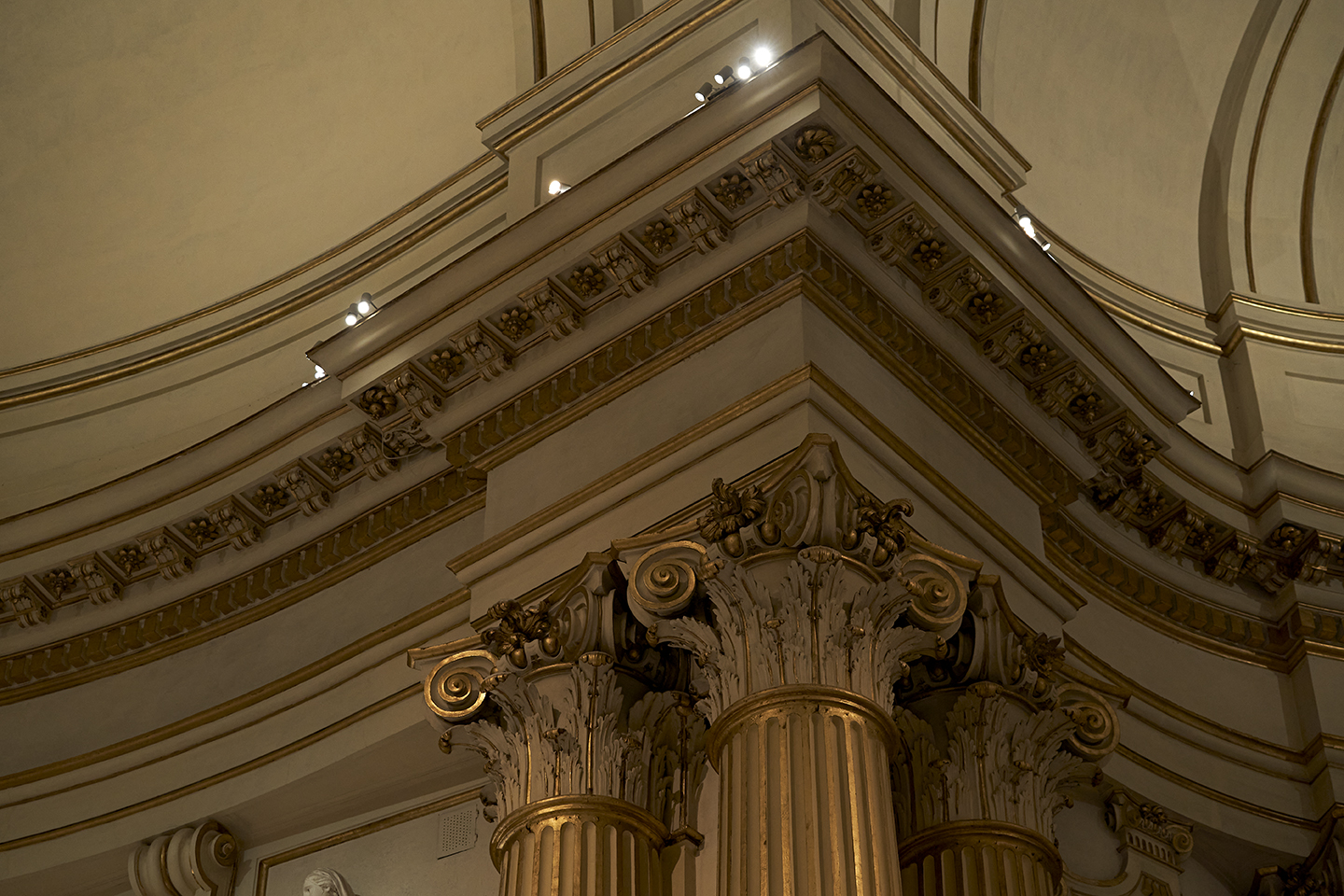 La grande area centrale sotto la cupola e il presbiterio, più raccolto e solenne, sono stati interpretati come due anime complementari. La luce ne accompagna il dialogo, unificando gli ambienti e guidando lo sguardo con discrezione, senza mai imporsi.