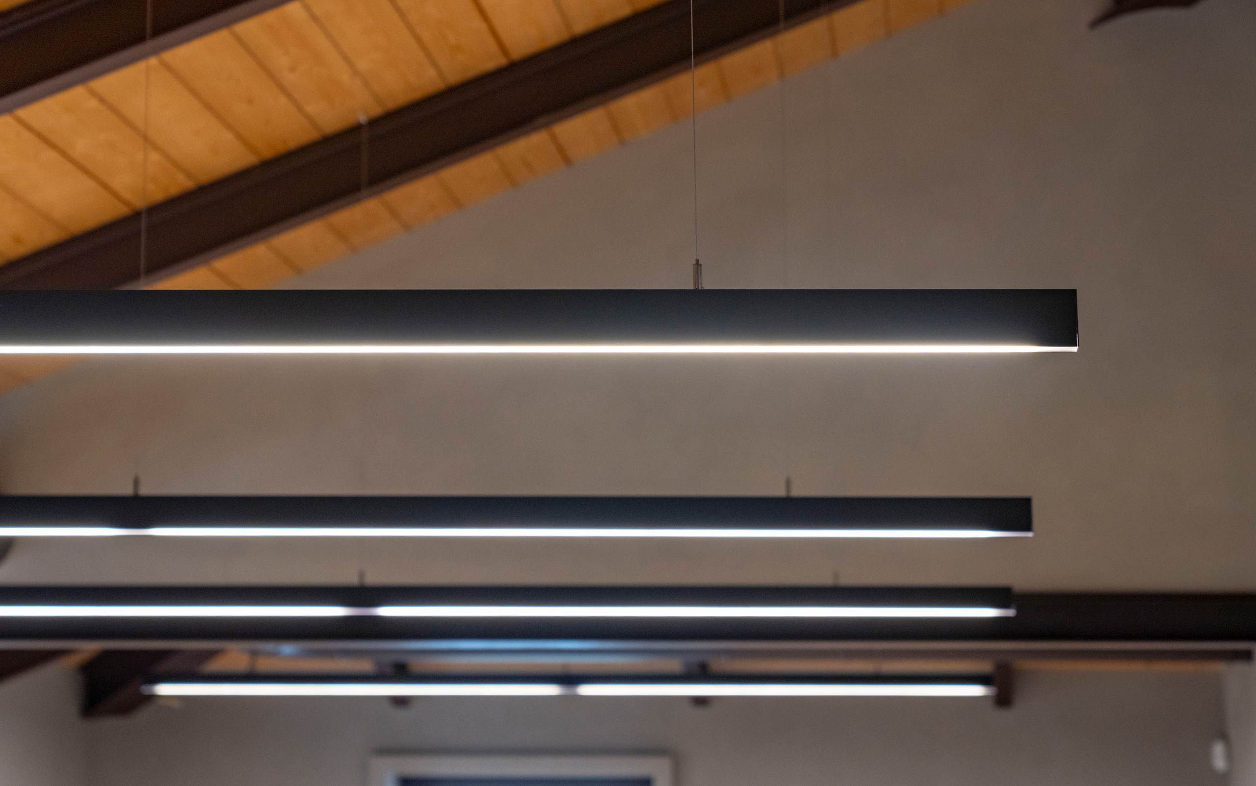Mentre l’illuminazione naturale viene assicurata e garantita dalle superfici vetrate, per la luce artificiale lo Studio Luce Comet RemaTarlazzi si è avvalsa della collaborazione con uno dei nostri fornitori di fiducia, Exenia, l’intento era quello di ottenere un risultato tecnico ed estetico allo stesso tempo, inserendosi perfettamente nel progetto attraverso l’uso di finiture coerenti con lo spirito degli obiettivi progettuali.