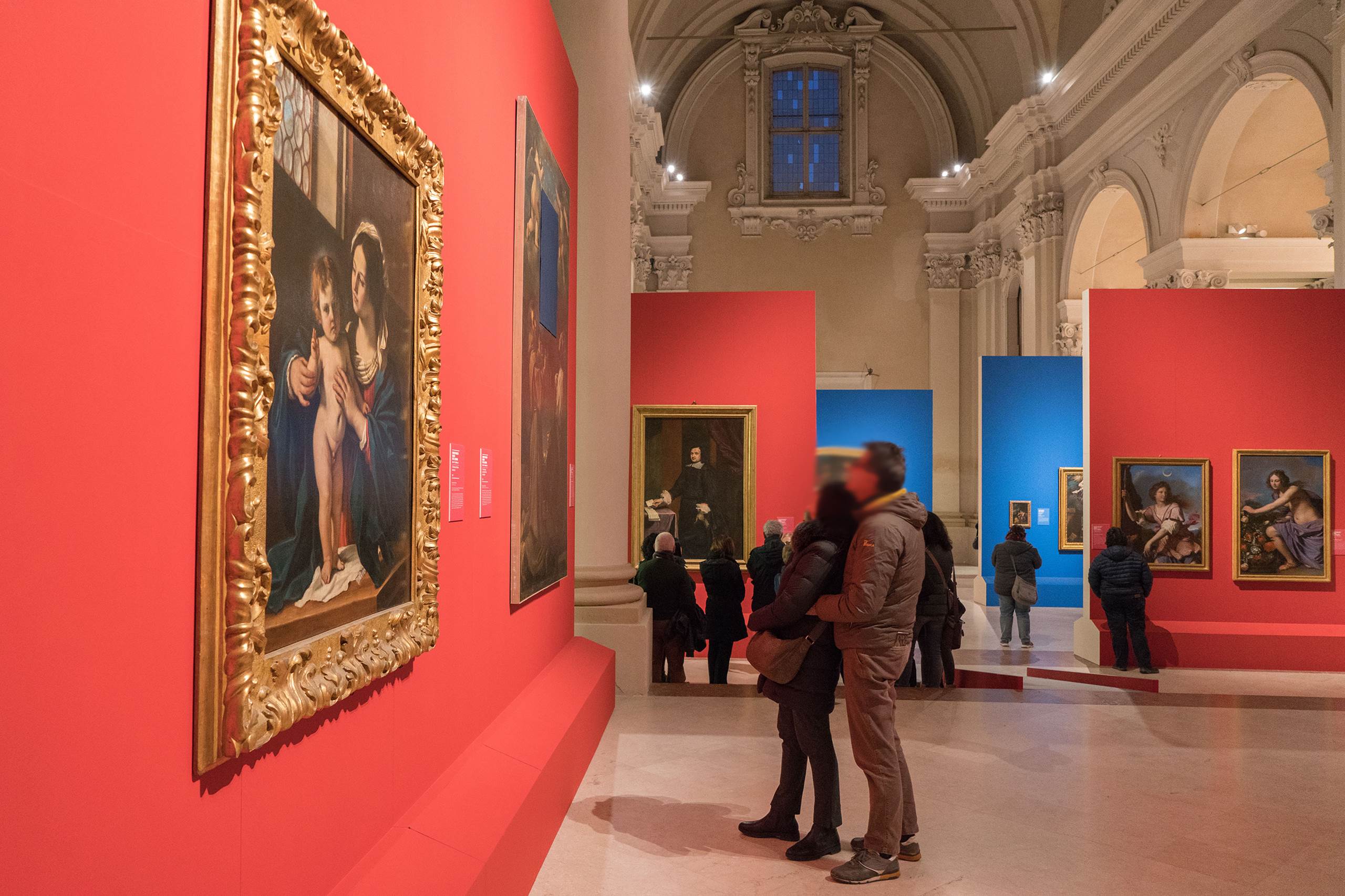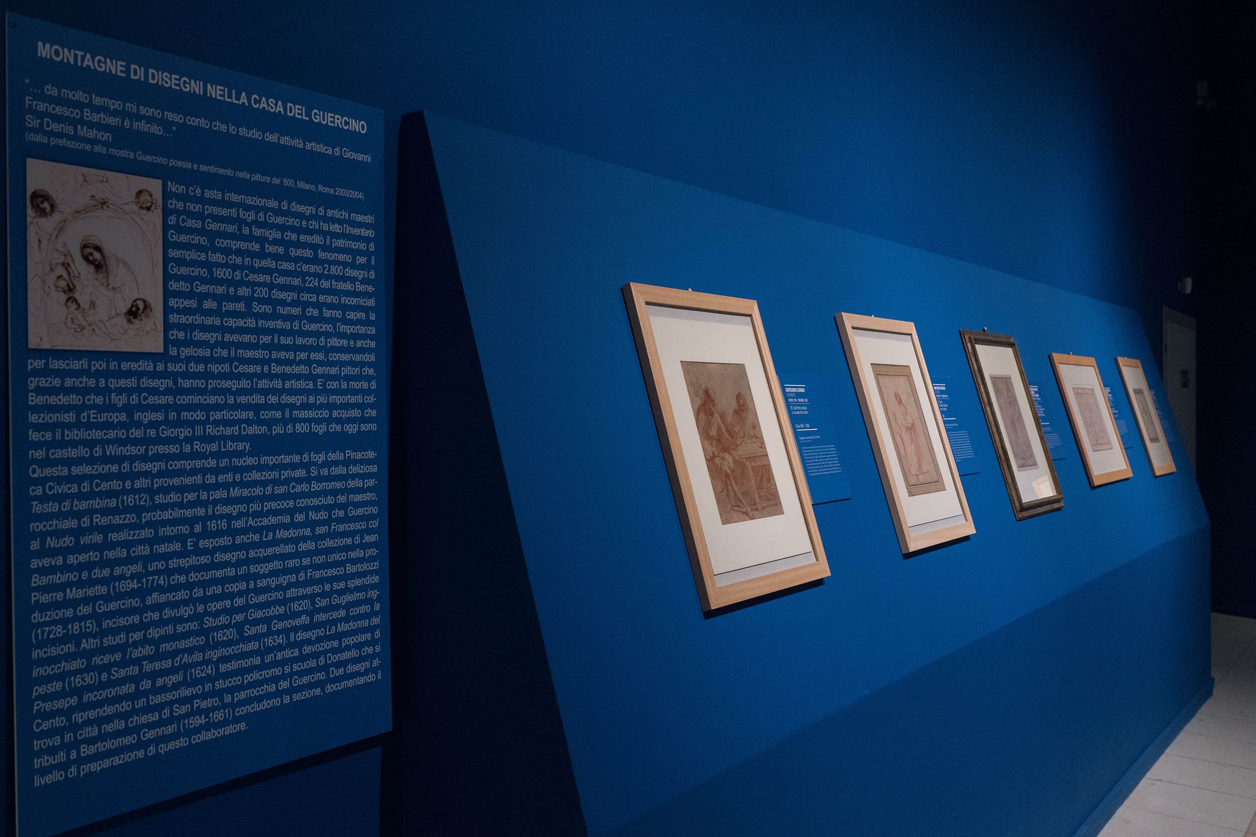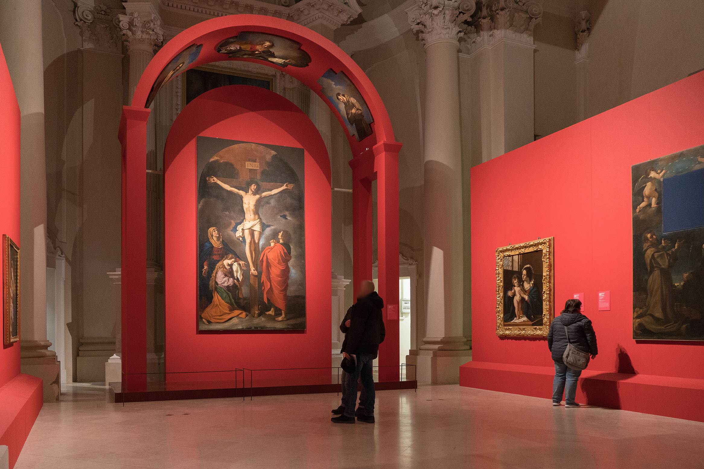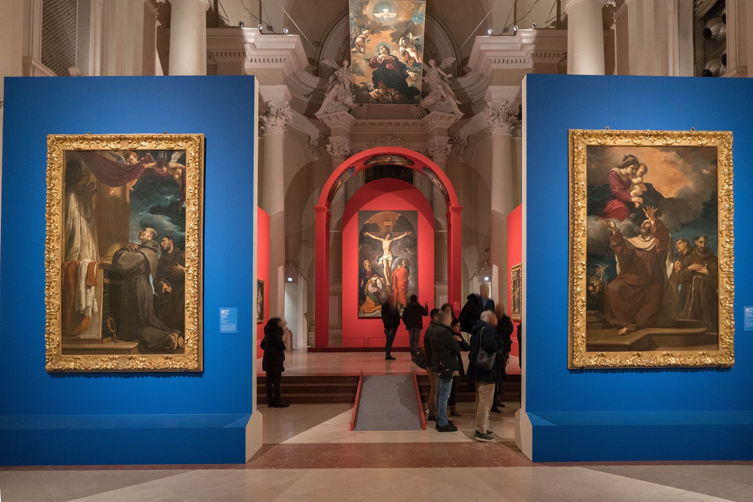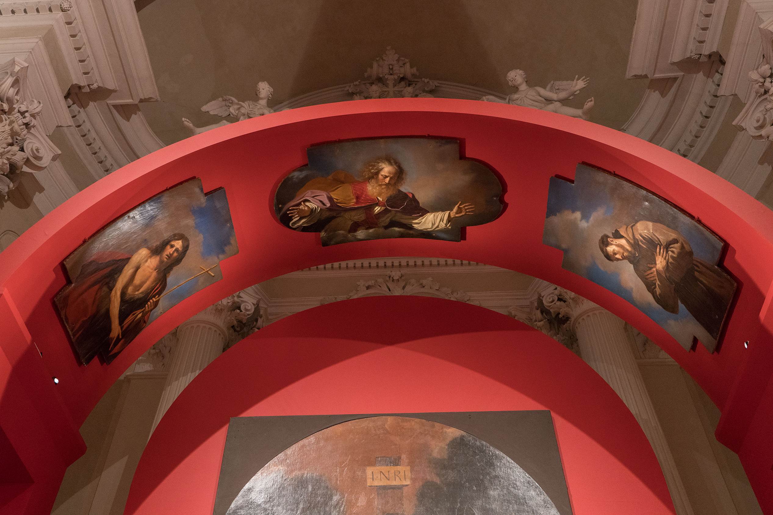 Nello spazio offerto dalla navata principale e dalla zona presbiteriale, un interessante allestimento realizzato con cromaticità dai forti contrasti, ha ospitato 27 dipinti – la maggior parte di proprietà della Pinacoteca Civica; nella suggestiva “sala blu” invece, ha trovato posto una collezione di oltre 20 disegni – di proprietà del Comune di Cento – raramente visibile al pubbico. In entrambe le esposizioni, il Museo Radius ha permesso un’illuminazione rispettosa del lugo, minimale e soprattutto di gran precisione.